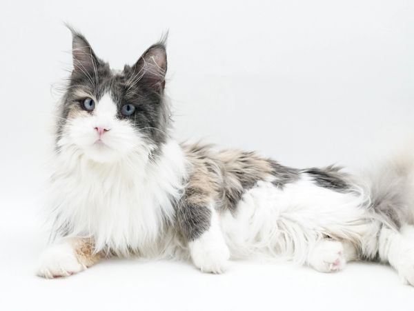 Izabella has the most adorable and soft trill and a passion for cooked chicken. She is incredibly sweet and always wants to be in the same room. Izzy first caught our eye with her beautiful, huge, and full tail. She's truly a magnificent Maine Coon.